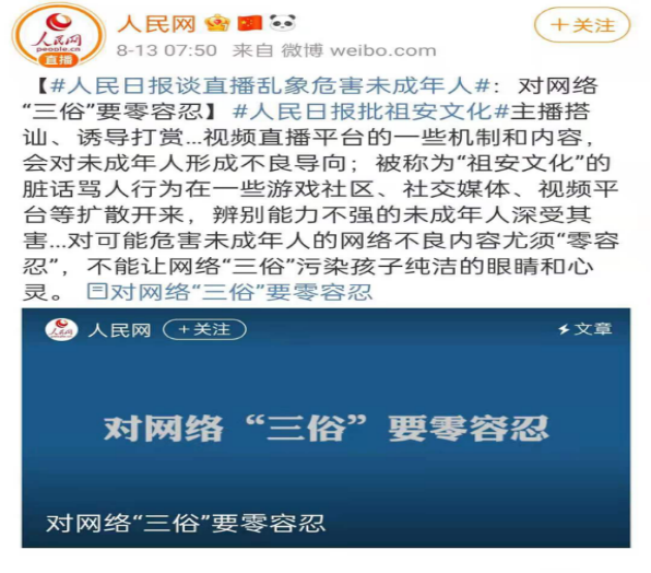 人民日报痛批祖安文化:主播搭讪、诱导打赏…视频直播平台的一些机制和内容,会对辨别能力不强的未成年人造成严重伤害。