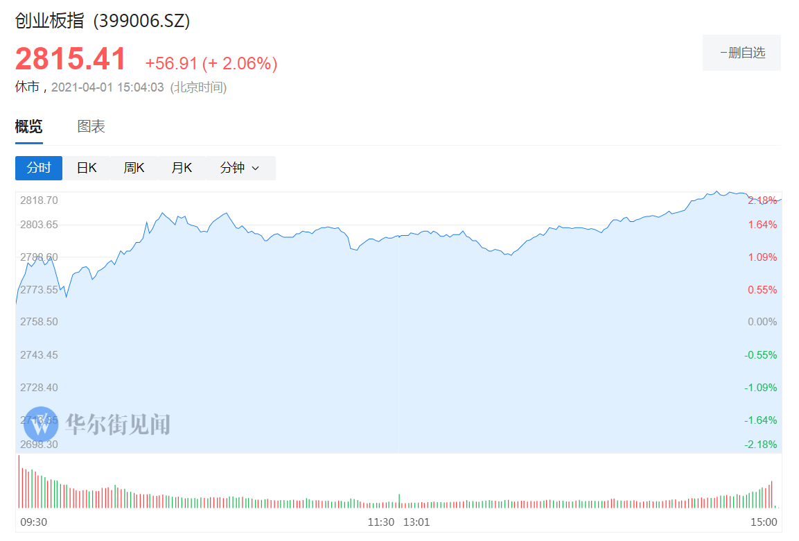 A股三大指数高开后,一路震荡上行,创业板指尾盘快速拉升。截至收盘,创业板指涨逾2%,深成指涨1.46%,沪指涨0.71%。科创50指数收报1266.75点,涨1.48%,成交额213亿。