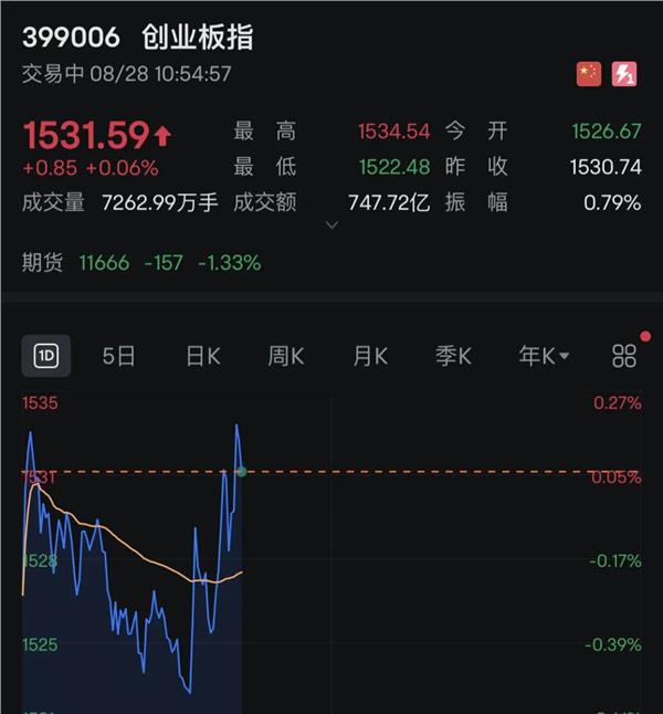 今日,富时中国A50指数期货跳水下跌,不过,A股虽然低开,但截至发稿,创业板指数一度翻红。