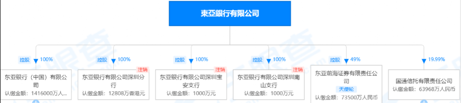2007年初,东亚银行首批获准在内地成立外资法人银行,注册成立全资附属银行——东亚银行(中国)有限公司(东亚中国)。目前,东亚银行及东亚中国在大湾区内共拥有逾80个网点。
